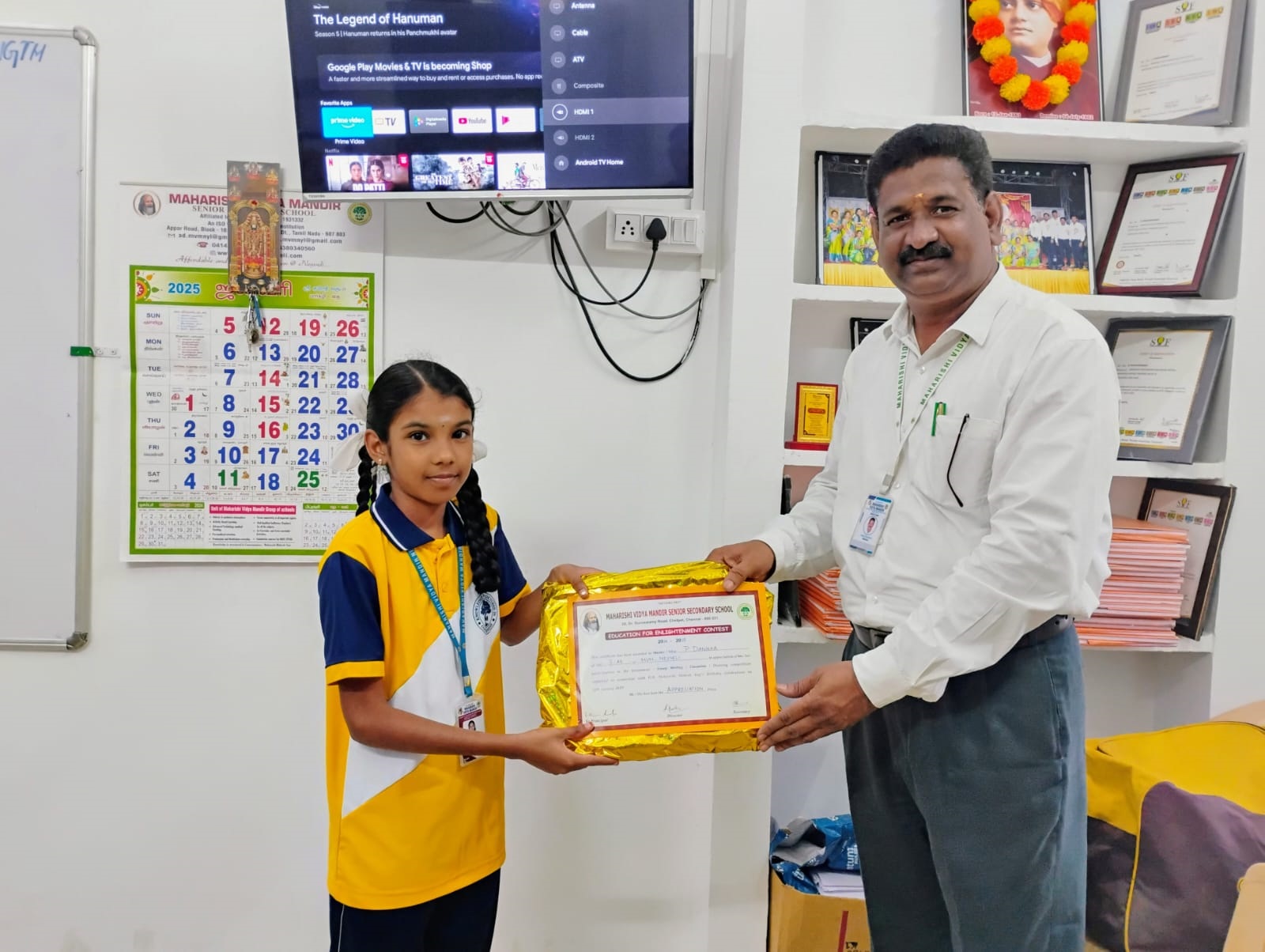 Miss. P Akshaya of Grade XI was felicitated with a cash prize of Rs 1000/- by Director HR NLCIL for her outstanding performance in Silambam. - 15 August 2025