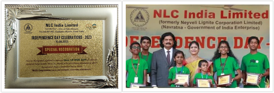 Chairman and Managing Director of NLC India Limited honoured our student Master. NIKHIL VIJAY for his stellar performance and bagging the "Championship Award" in the International Arena at a very young age during Independence Day Celebration-15 August 2023