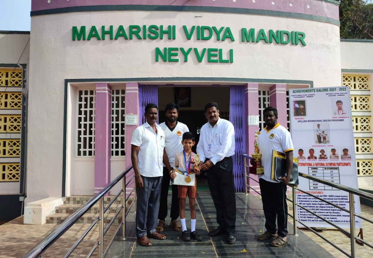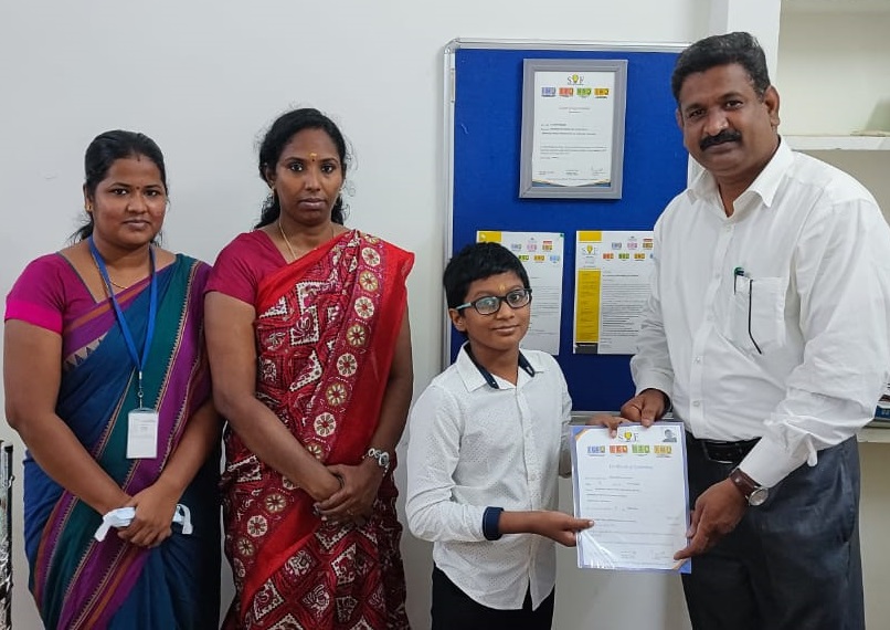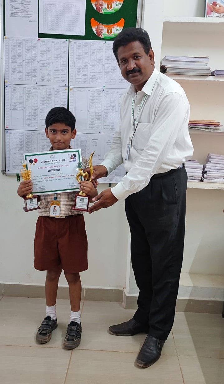 NIKHIL VIJAY A B - GRADE IV , has participated in 8th International Abacus Competition was held recently in Dubai. Out of 2000 students from 16 different countries, our student won “Championship Award”.Shri. Prasanna Kumar Motupalli , Chairman and Managing Director of NLC India Limited met and applauded the student for their stellar performance and bagging the "Championship Award" in the International Arena at a very young age - 17 July 2023