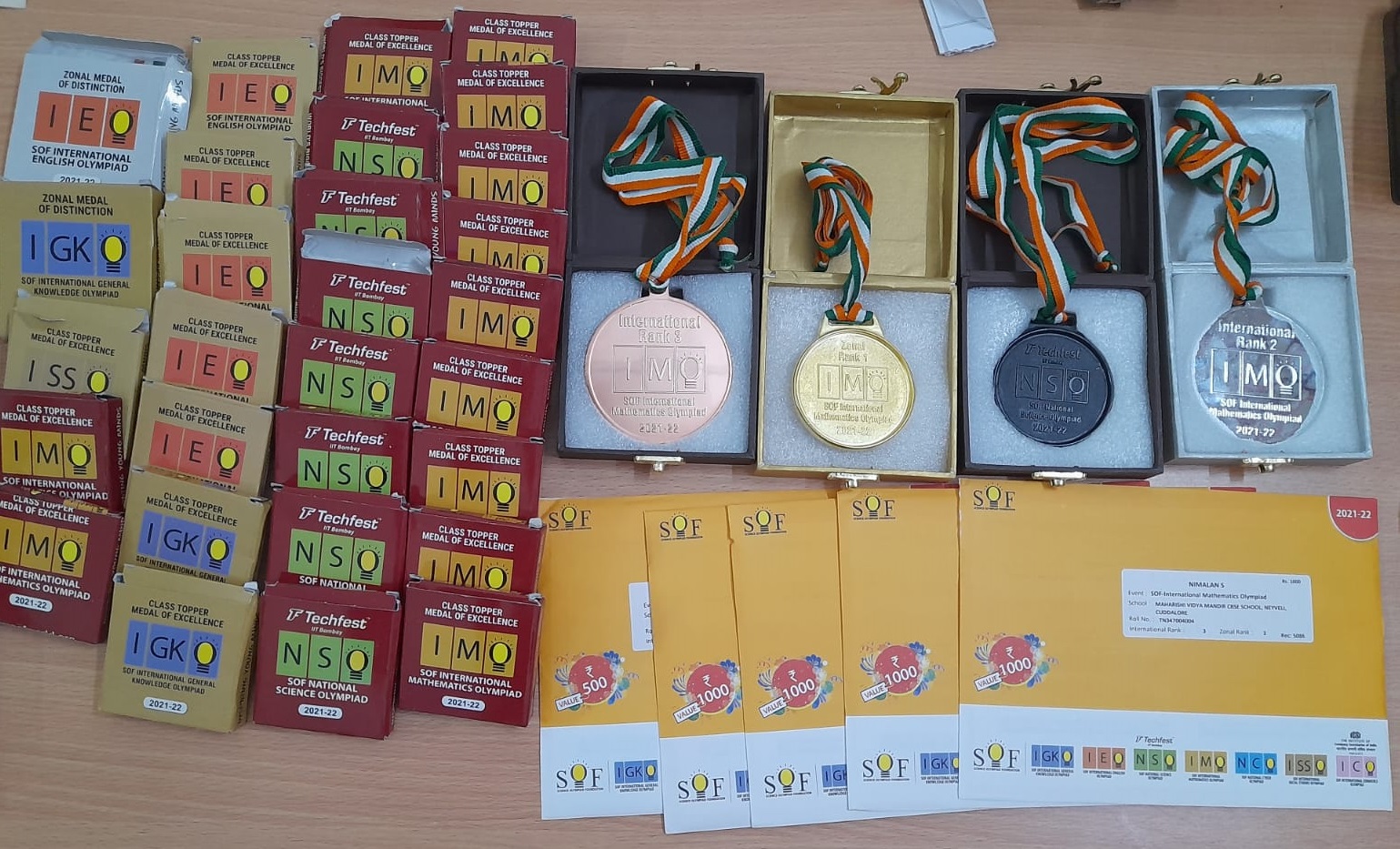 Medals for Distinction in Mathematics, Science, English, Social science, General Knowledge Olympiads