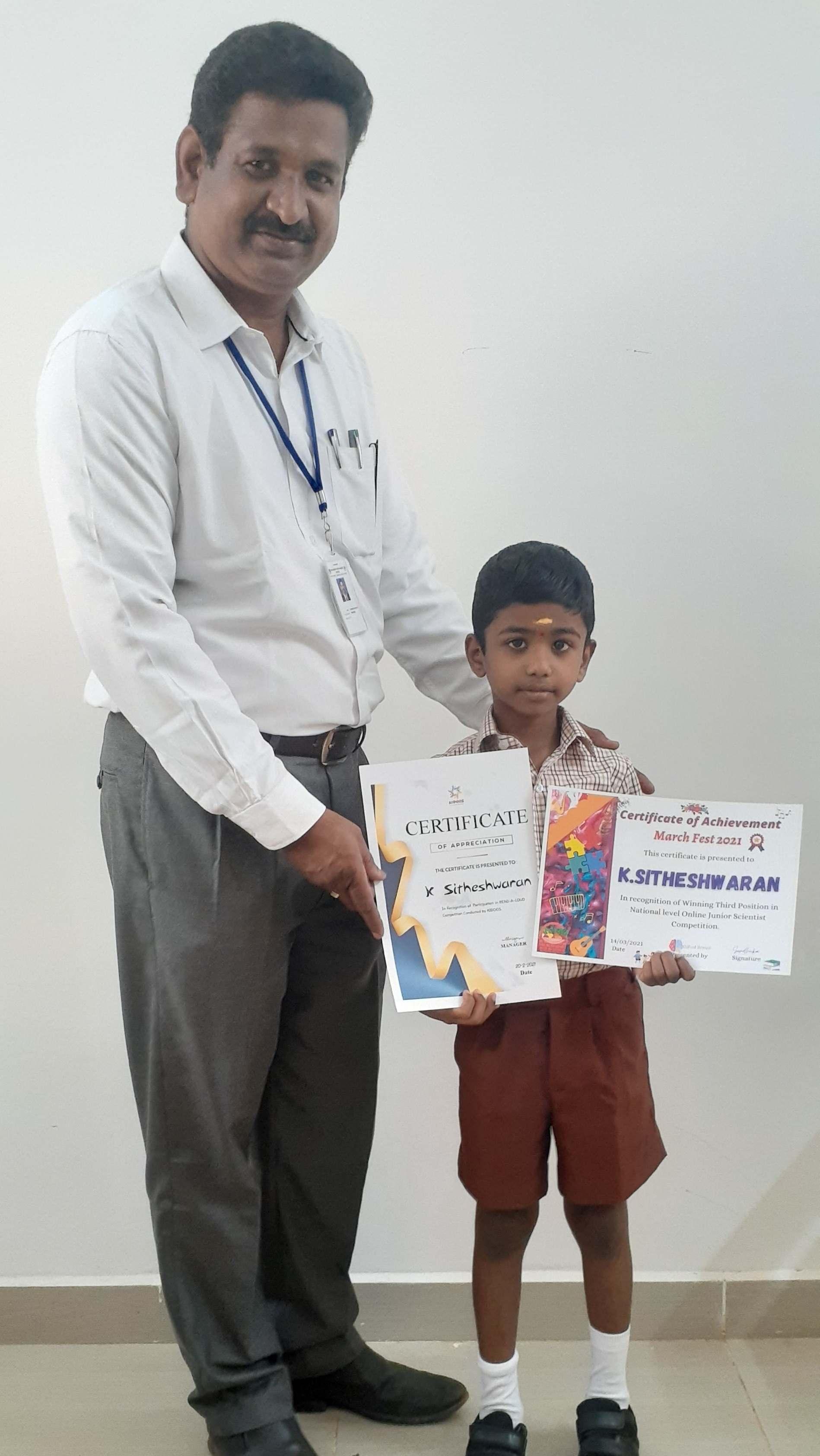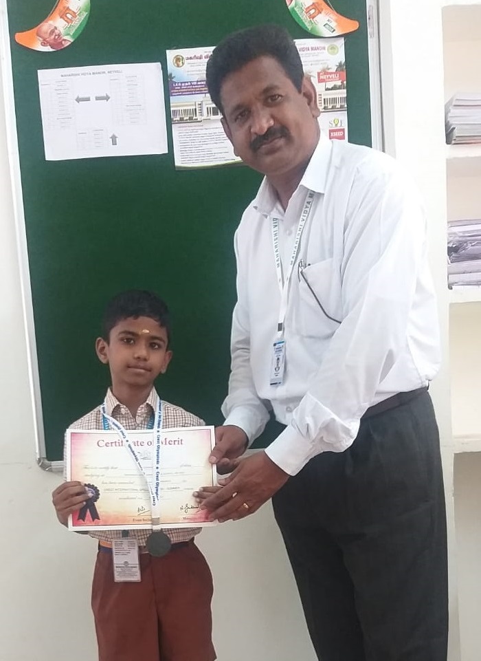 SITHESHWARAN K, has participated International Spellbee(CSB) conducted by Crest Olympiad and Unicus Olympiad and got recognition (STAR PERFORMANCE) for his Excellence.