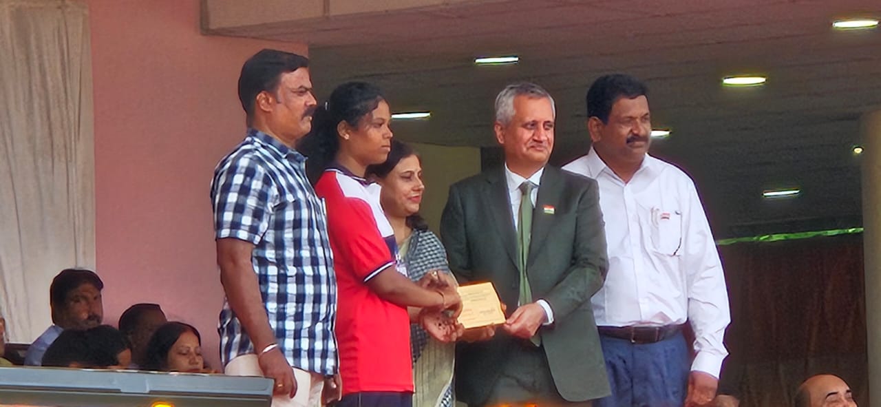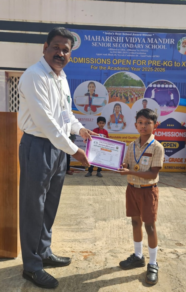 Miss. P Akshaya of Grade XI was felicitated with a cash prize of Rs 1000/- by Director HR NLCIL for her outstanding performance in Silambam. - 15 August 2025