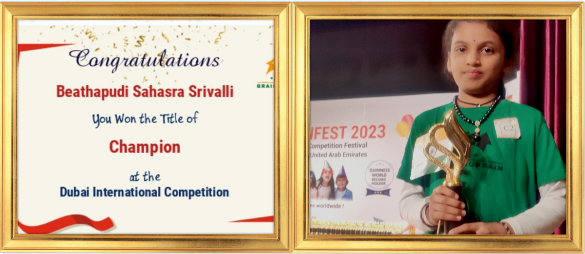 Our Student Beathapudi Sahasra Srivalli of Grade III won the Championship trophy at Brainobrain Abacus International Fest conducted at Dubai - 25 November 2023