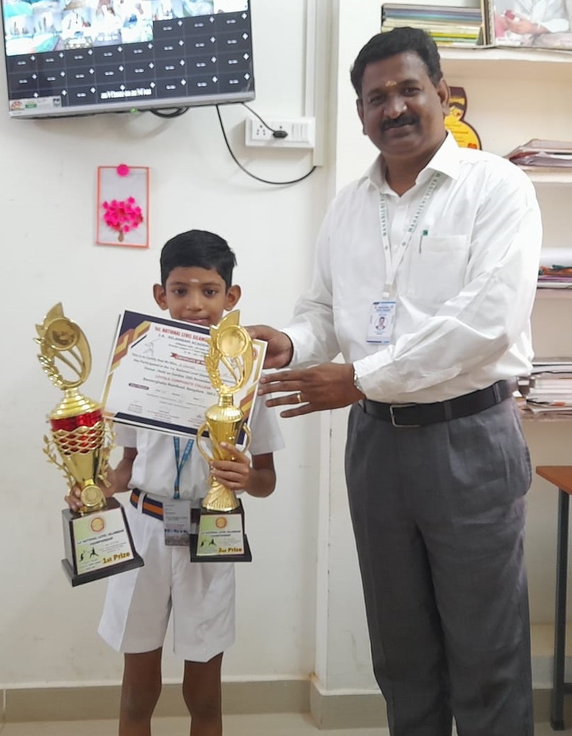 Master. TANISH K - GRADE IV , has participated National Level Silambam Tournament and bagged First Prize in Single stick and Second Prize in Double stick